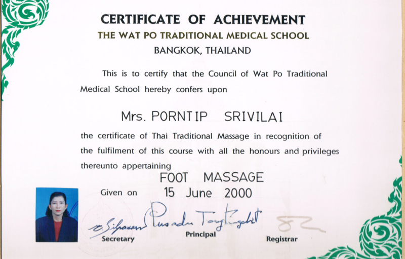 Meine Ausbildung absolvierte ich im Jahre 2000 in der renomierten "Wat Po Traditional